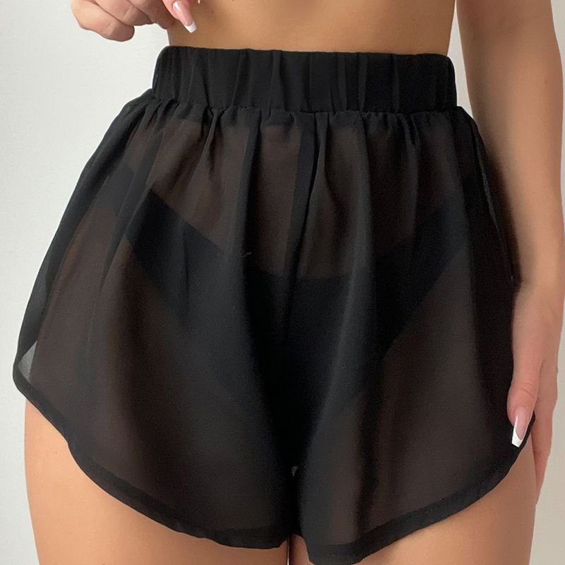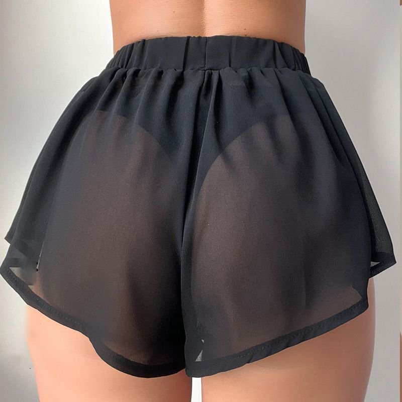Black Chiffon See-Through Shorts