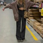 Black Corduroy Straight-Leg Wide-Leg Trousers