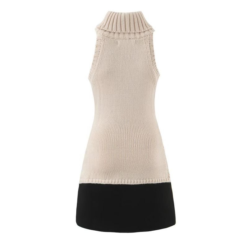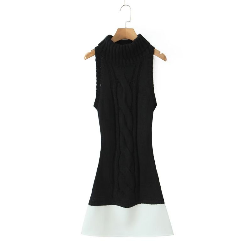 Black High-Neck Sleeveless Pullover Knitted Skirt