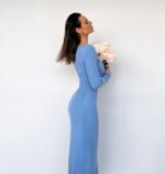 Blue Faux Two-Piece Knitted Long-Sleeved Dress
