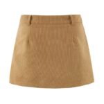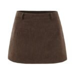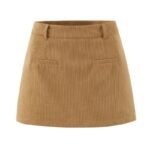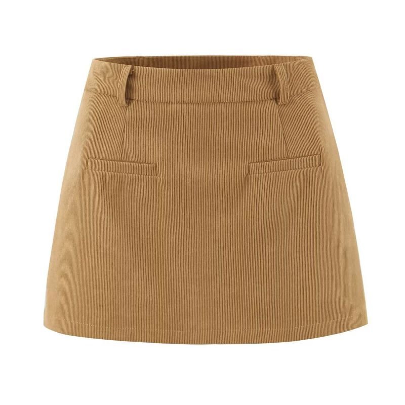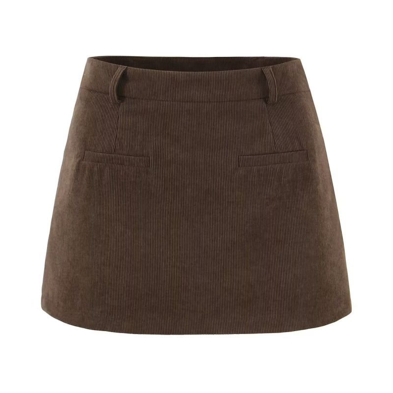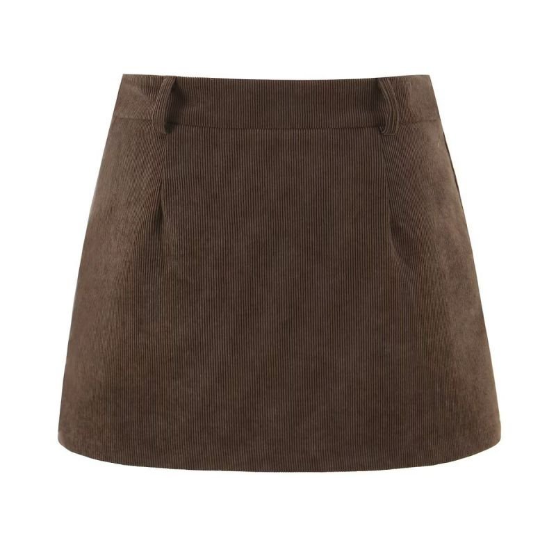 Brown Corduroy High Waist Skirt (With Safety Shorts)