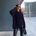 Brown Tassel Knit Crew Neck Sweater