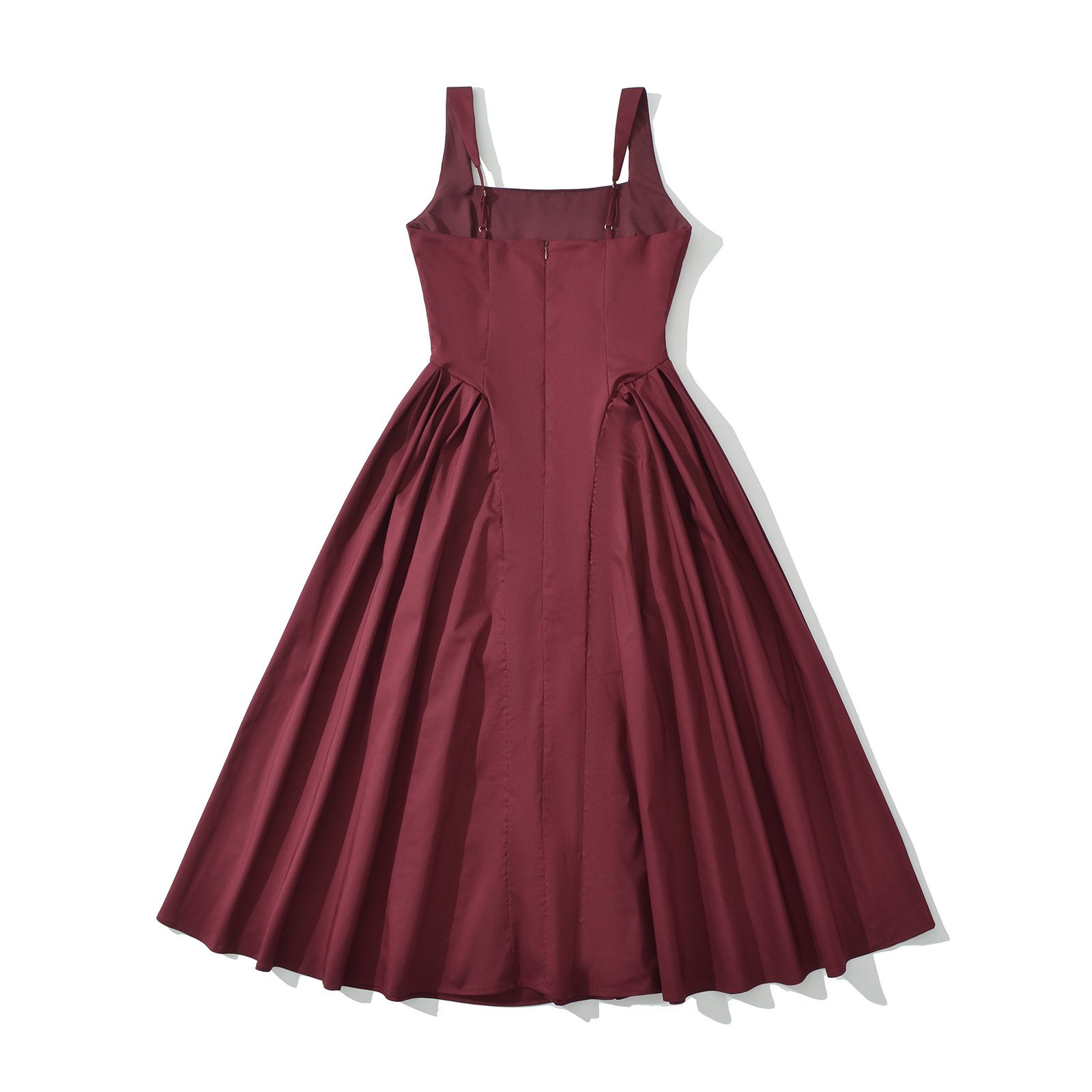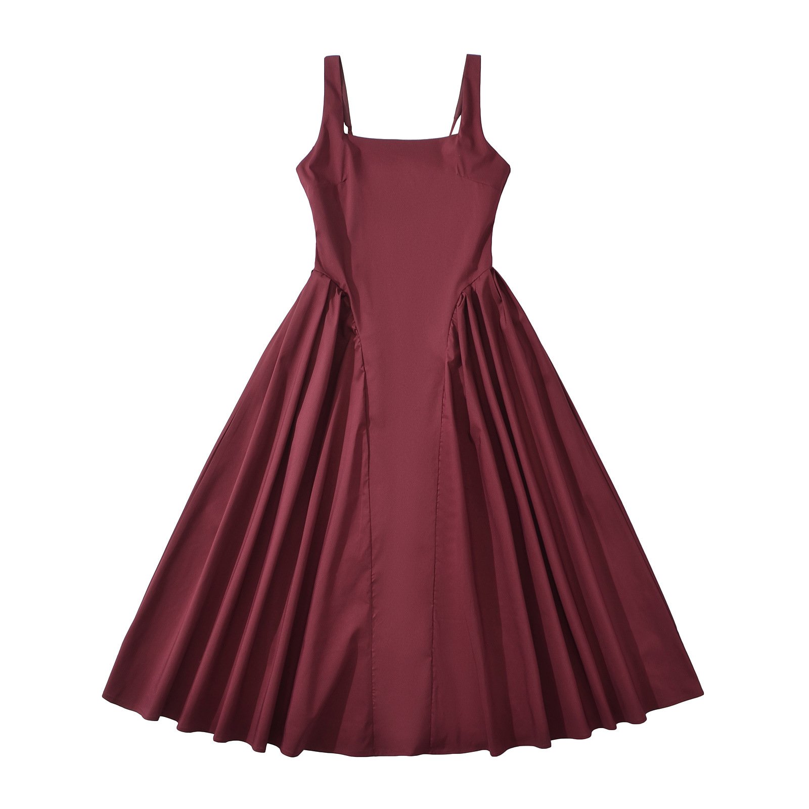 Claret Polyester Pleated Sleeveless Maxi Dress