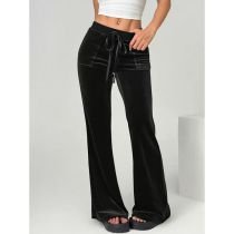 Coffee Brown Polyester Drawstring Straight Leg Trousers