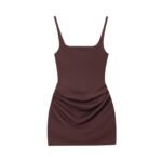 Coffee Brown Polyester Pleated Sleeveless Mini Skirt