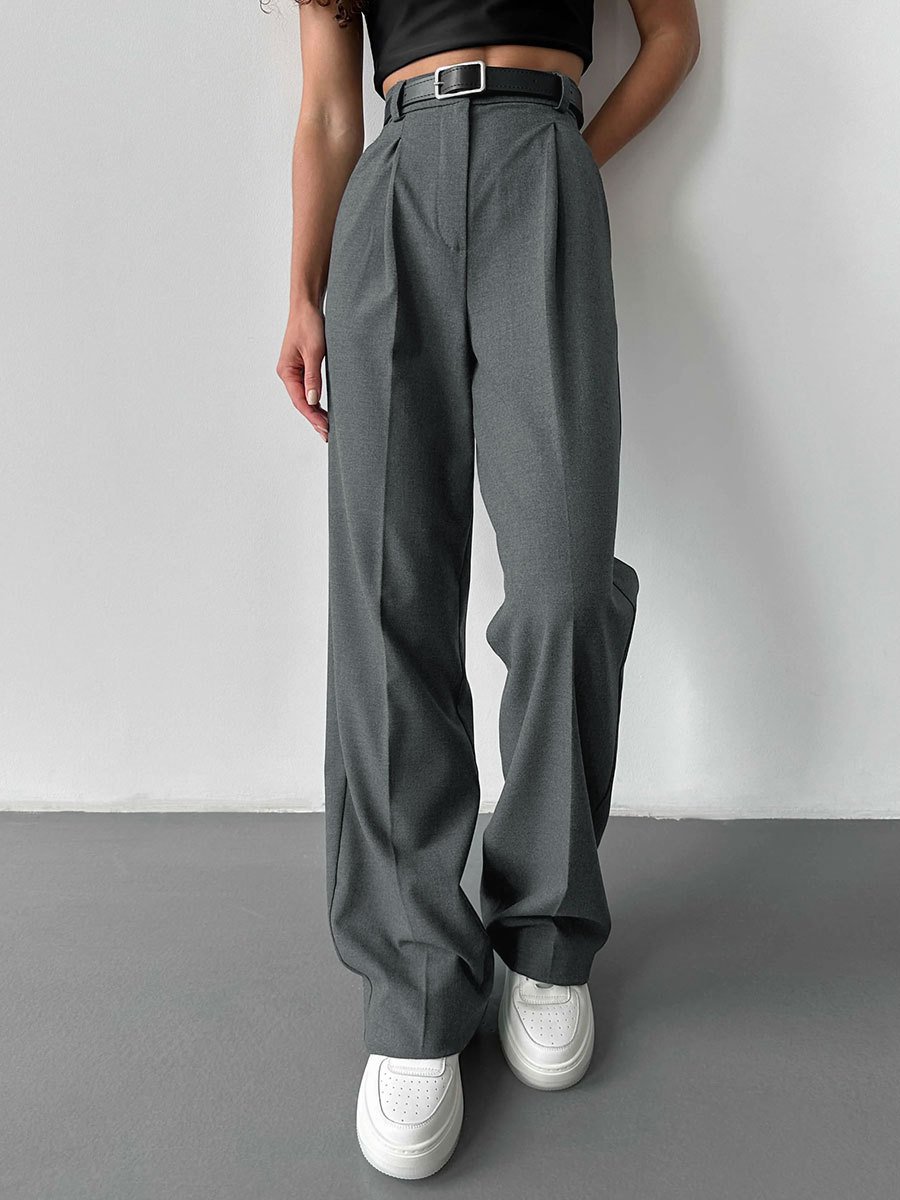 Dark Gray Straight-Leg Suit Trousers