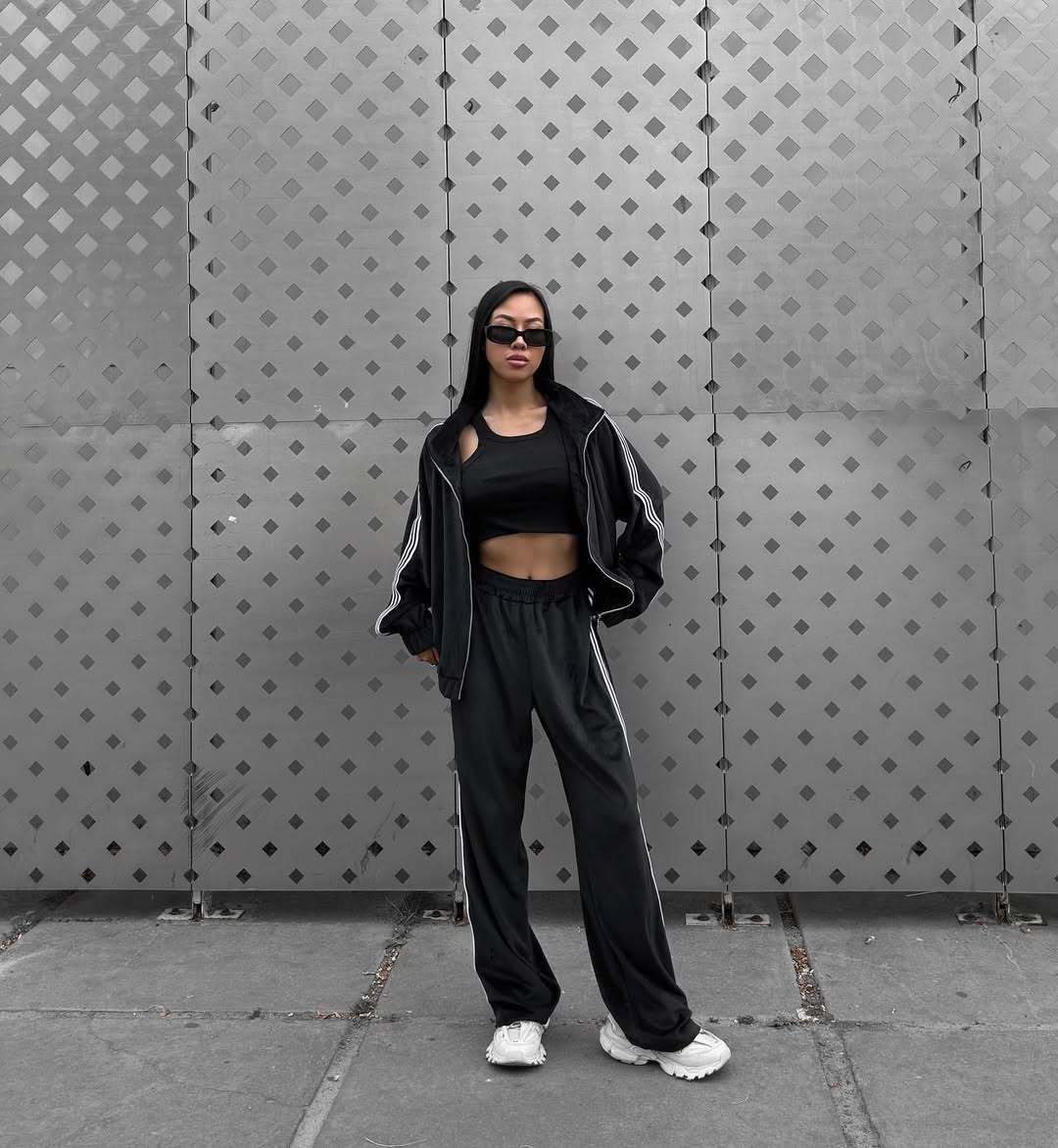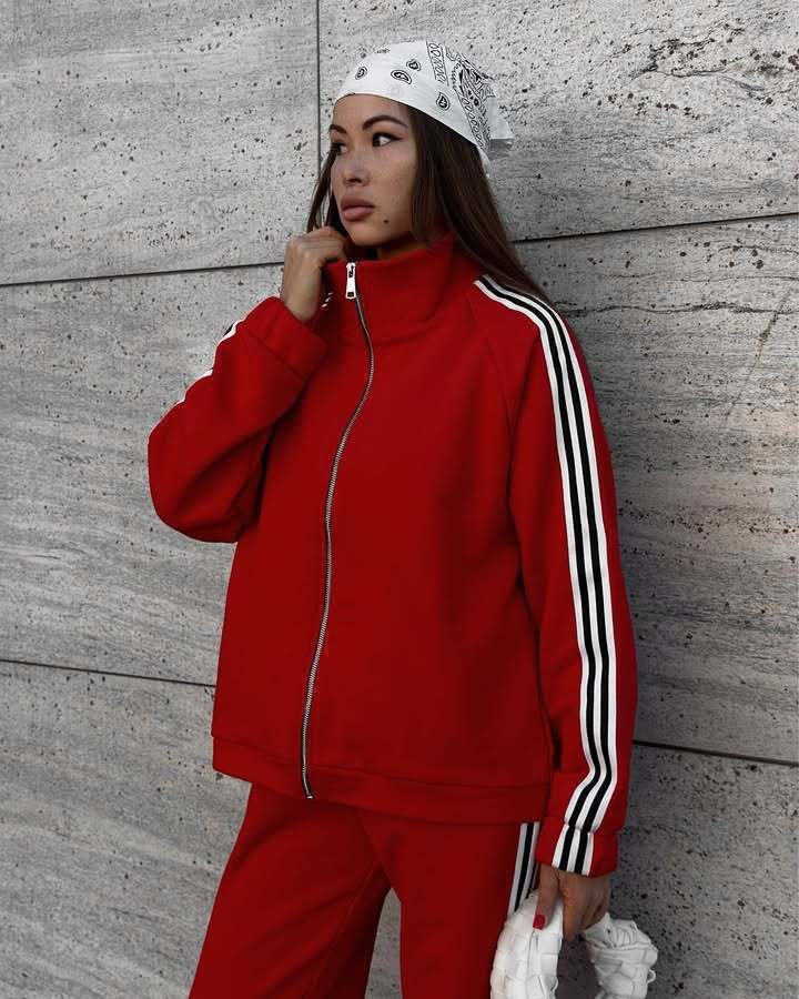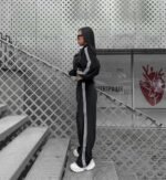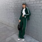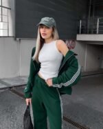 Green Color-Blocked Striped Hooded Jacket And Trousers Set