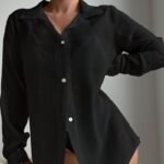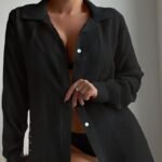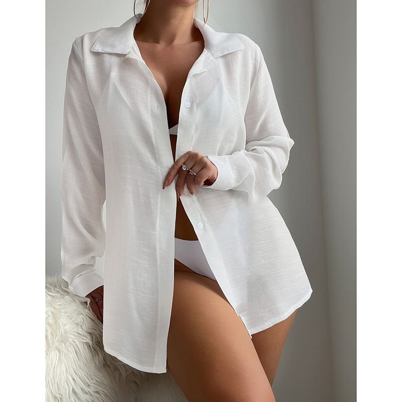 Light Blue Polyester Lapel Button-Down Sun Protection Shirt
