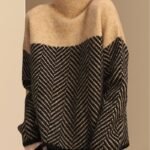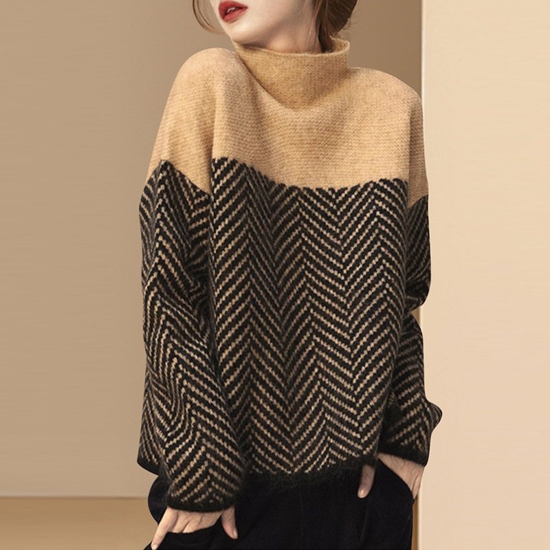 Navy Blue Colorblock Half-Mocked Knitted Sweater