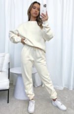 Sky Blue Crew Neck Pullover Long-Sleeved Sweatshirt And Pants Set