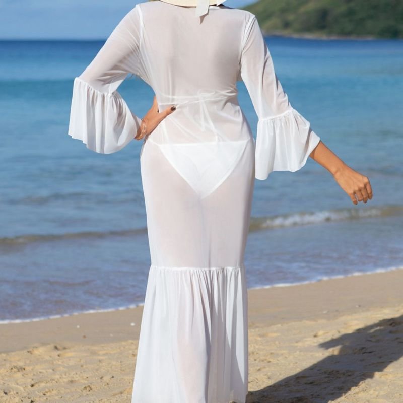 White Chiffon Lace-Up Sunscreen Maxi Dress