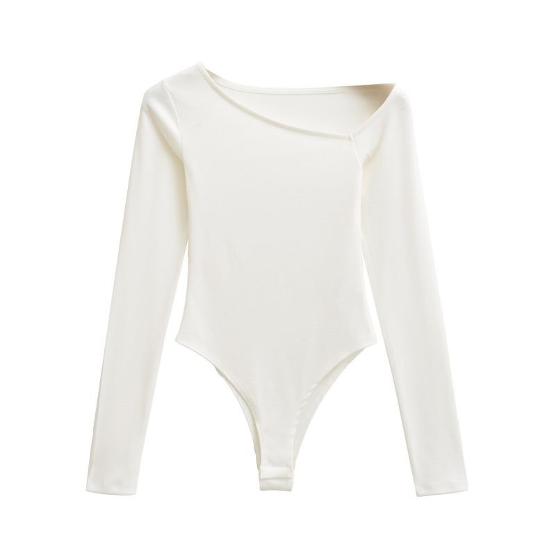 White Cotton Off-Shoulder Long-Sleeved Bodysuit
