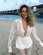 White Tencel V-Neck Shirt